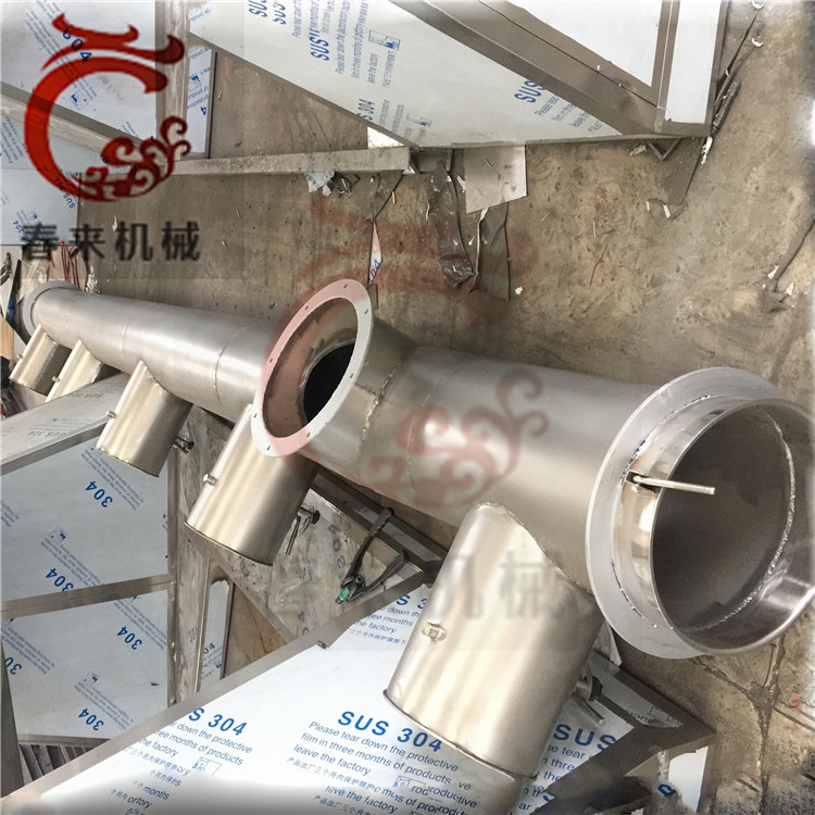 物料自進料進口進入機內,在振動力作用下,物料沿水平面流化床拋擲,向前連續運動,熱風向上穿過流化床同濕物料換熱后,濕空氣經旋風分離器除塵后由排風1:3排出.干燥物料由排料進口排出。
