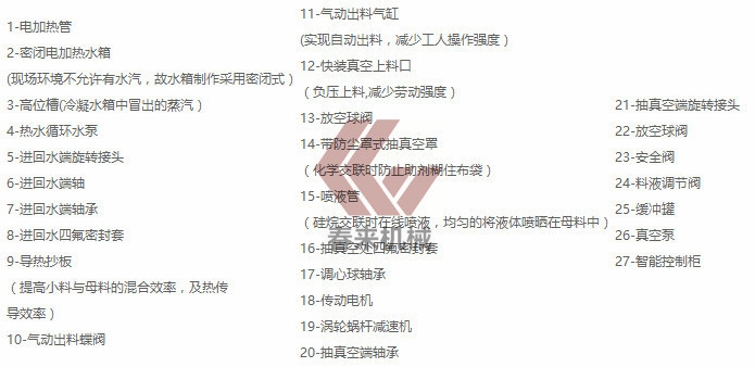 4、設備可選用變頻調速的方式,使設備啟動平穩,電機電流不過大,延長設備壽命。人孔蓋與桶體密封為耐溫耐壓的氟橡膠材料,出料口為真空蝶閥,不僅可以確保罐內真空度,而且可以調節出料時的流量。