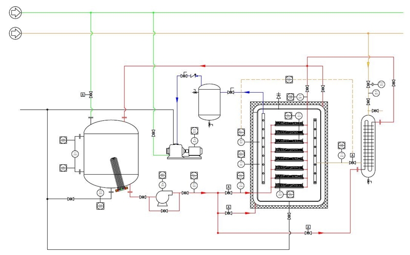設備管路系統由控制閥門、真空泵、過濾器、安全閥、疏水閥等專用閥件構成。關鍵部件為控制閥門和真空系統。